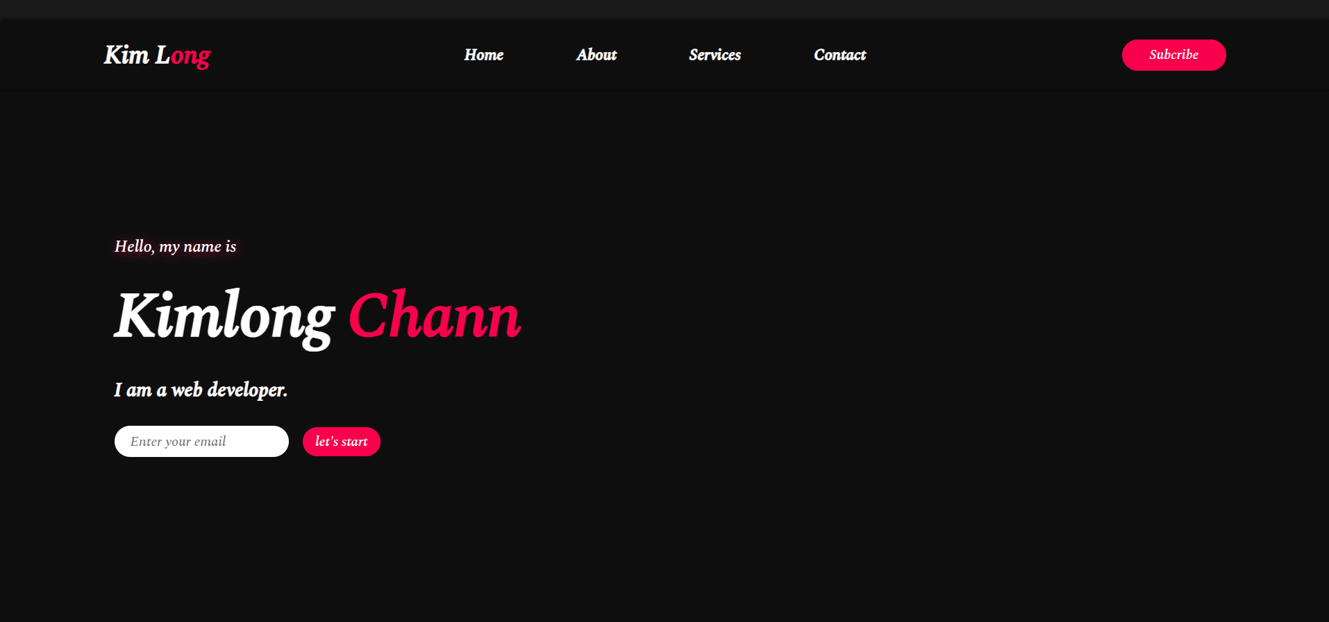Hi there, My name is Chann Kimlong. I am a fullstack web developer, a freelancer, and a Computer Science graduate from the Cambodia Academy of Digital Technology (CADT), specializing in Software Engineering. With a passion for web development, I have gained hands-on experience in technologies like React.js, Next.js, Vue.js, Tailwind CSS, React Native, Flutter (Frontend), Node.js, Express.js, NestJS, Hono, Laravel (Backend), MongoDB, PostgreSQL (Database), and Docker, CI/CD pipelines, GitHub Actions (DevOps).